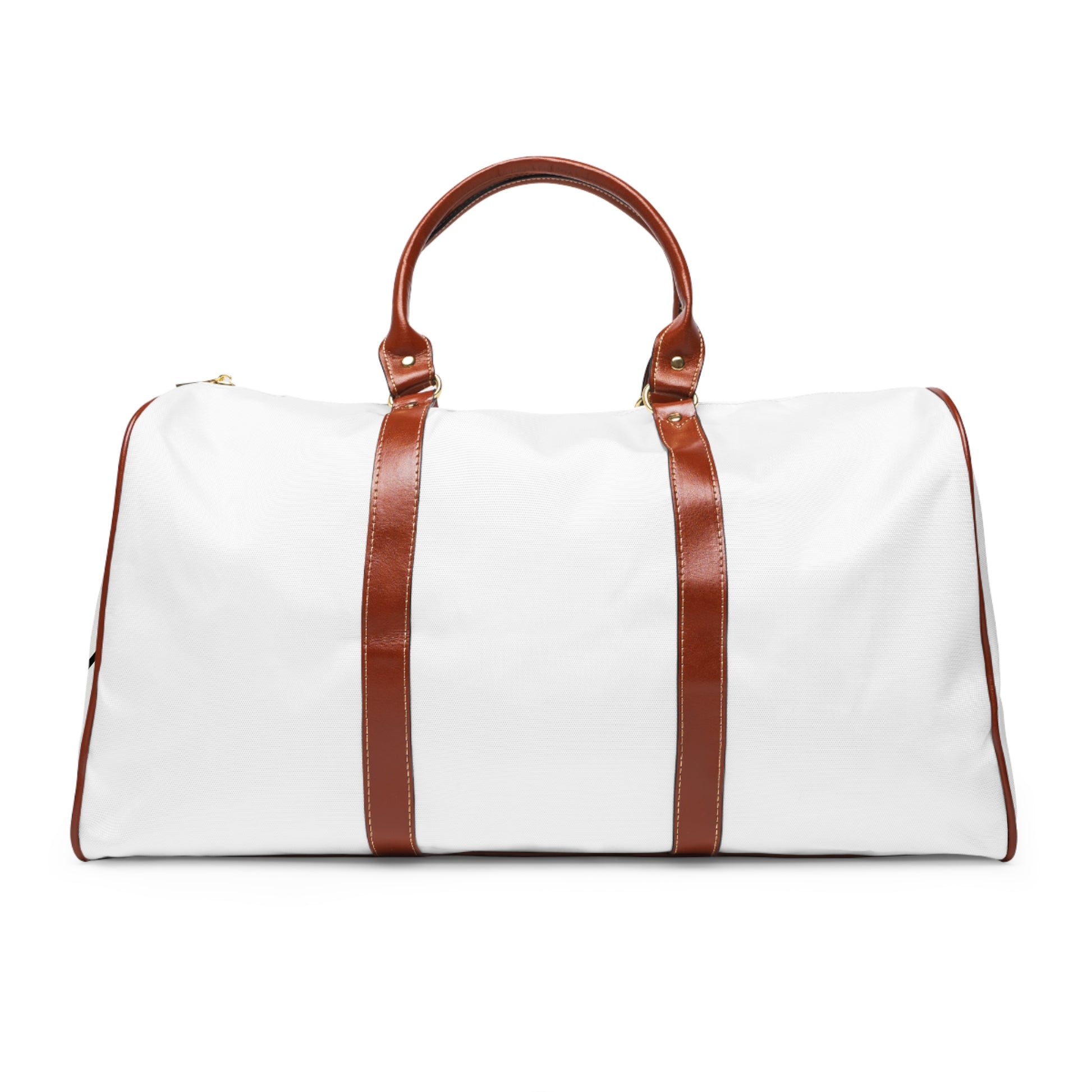 Carry your plans, not your worries. This waterproof travel bag combines lightweight durability with a refined, travel-ready look — white all-over print fabric accented by warm brown PU leather straps and gold hardware. The roomy 20" × 12" × 9" interior holds a weekend’s worth of clothes and shoes, while a single open pocket keeps boarding passes, chargers, or a passport within reach. Polyester lining and high-grade nylon construction shrug off spills and rain, and the adjustable shoulder strap lets you switch from hand carry to crossbody in seconds. The crisp printing preserves bold artwork and monograms so the bag stays personal trip after trip.